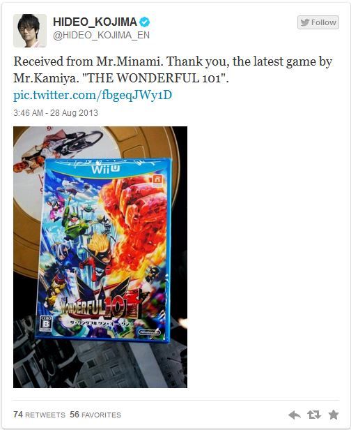 Tramite Twitter, il regista…err lo sviluppatore della serie Metal Gear, ha fatto sapere ai suoi follower di aver ricevuto una copia di The Wonderful 101 da Platinum games.