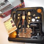 Aprendo la nostra preziosissima scatoletta di pandora ci si rende conto che la dotazione è ricchissima: abbiamo due volti e sette mani diverse, una delle quali sorregge una tazza colma di thé, la bevanda preferita del nostro professore. Come accessori invece abbiamo: una tazza (sempre con thé) e un sottotazza, l’immancabile taccuino, una penna, una sedia, un tavolino e una pavimentazione coerente con le tipiche cittadine che siamo soliti vedere nei giochi. Presente inoltre un’asta trasparente di appoggio per tenere in piedi il modello, una carta e, tipico delle Revoltech, una moneta di plastica (che sono un po’ i punti vip della Kaiyodo) e un piccolo contenitore con coperchio per tenere ordinati i componenti al di fuori della confezione. La confezione infine non ha nessun artwork di rilievo e sul retro trovate esempi di pose, proprio come per le Figma.