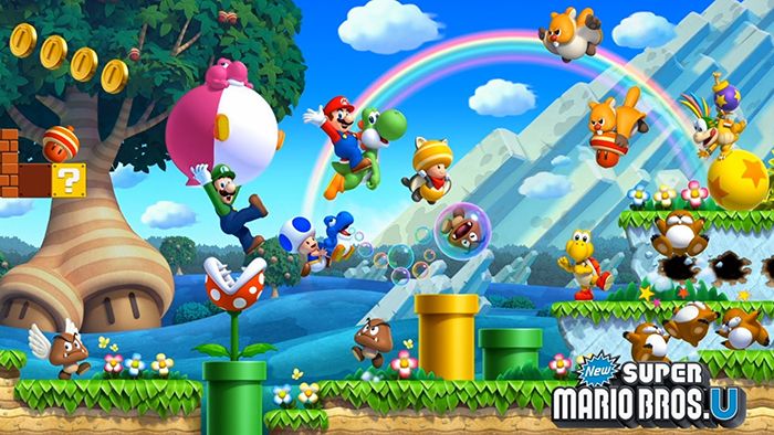 Il secondo è invece incentrato sui personaggi della saga. E’ infatti possibile notare oltre a Mario, anche Luigi, Yoshi, Peach, Bowser e molti altri, posti su uno sfondo celeste.