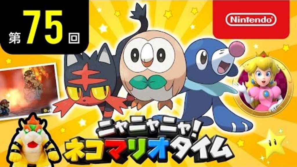 In questo 75° episodio del Il Mario Gatto Show in lingua giapponese, Mario e Peach Gatto si dedicheranno principalmente a Pokémon Sole e Luna per Nintendo 3DS, oltre ai soliti titoli presenti e rilasciati sul Nintendo eShop giapponese.