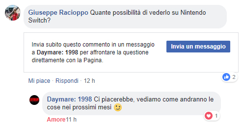Abbiamo chiesto ancora una volta a Invader Studios, gli sviluppatori italiani dietro Daymare: 1998, survival horror ispirato ai titoli del genere degli anni ’80 e ’90 con meccaniche moderne, quante possibilità ci siano di vederlo anche sulla console ibrida della Casa di Kyoto.