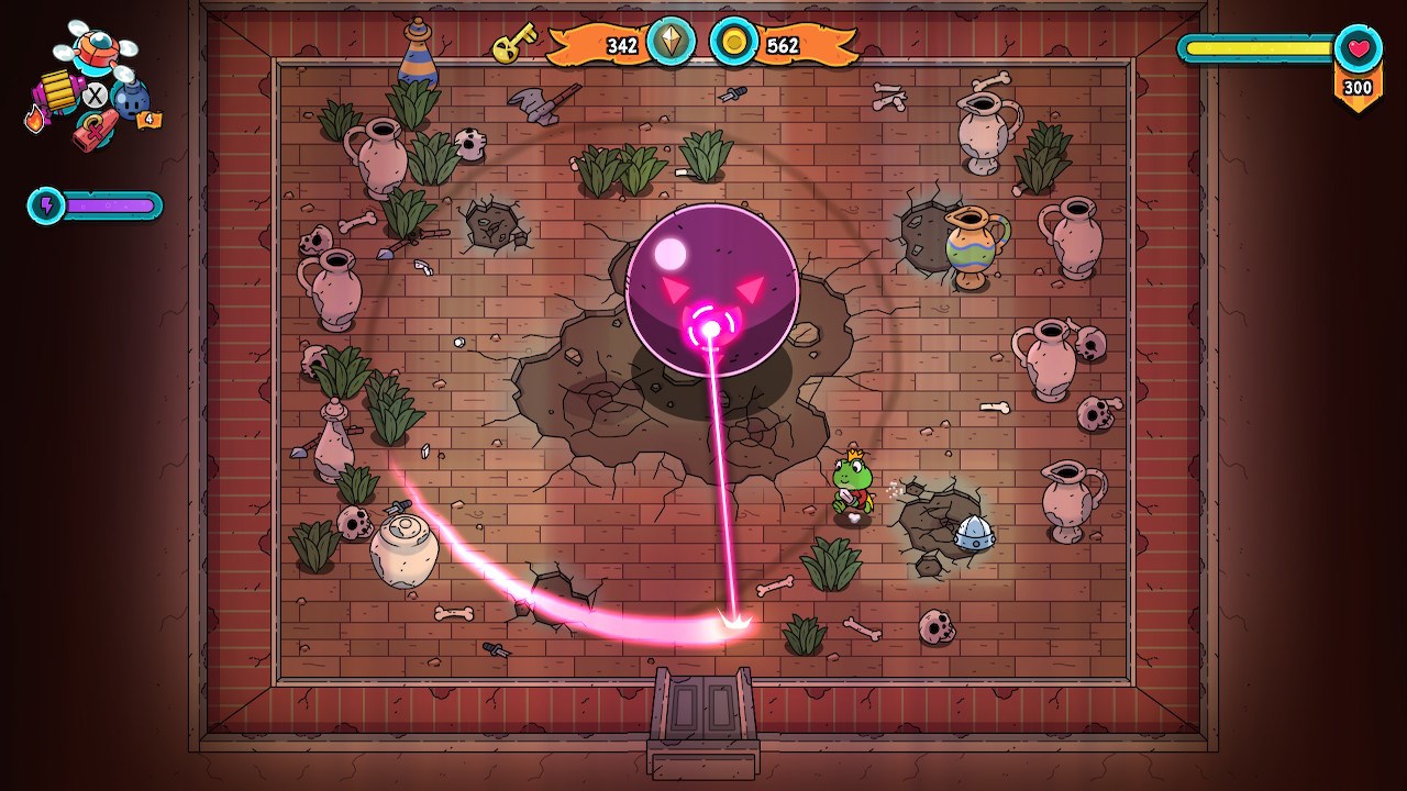 . Le Spade di Ditto, prima di fronteggiare Mormo, devono farsi largo attraverso i due dungeon principali della mappa; questi ultimi nascondono i cosiddetti “Toys”, armi e strumenti indispensabili per procedere nell’avventura e che permettono approcci al combattimento ed al problem solving sempre differenti. Si passa infatti dal classico arco alla palla da bowling, dal drone telecomandato alla magica mazza da golf, dalla torcia all’occhio laser. Varietà ce n’è per tutti i gusti, per quanto alcuni Toys siano oggettivamente più efficaci di altri.