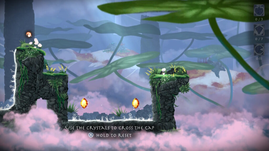 Il gioco di Stone Lantern Games non ammette errori e gli sviluppatori ne sono consapevoli. Infatti, tenendo premuto Y, potrete ricominciare istantaneamente dall’inizio del Gate. E lo farete molto spesso, perché Evergate unisce la difficoltà di un puzzle game nel seguire il percorso corretto a quella dei platform, dove un posizionamento o salto errato, può pregiudicare quanto fatto fino a quel momento.