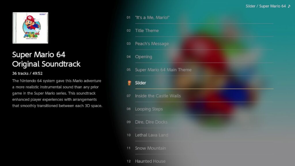Oggi, Nintendo ha sottolineato che il lettore musicale comprenderà oltre 170 tracce. Ovviamente non sappiamo di preciso quali saranno le musiche incluse ma alcuni screenshot ci danno qualche anticipazione: