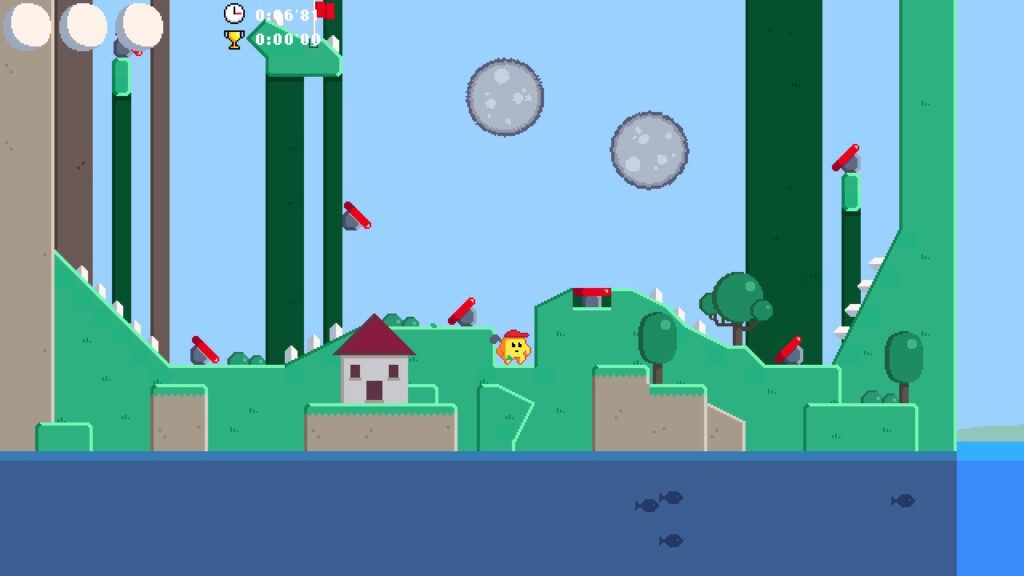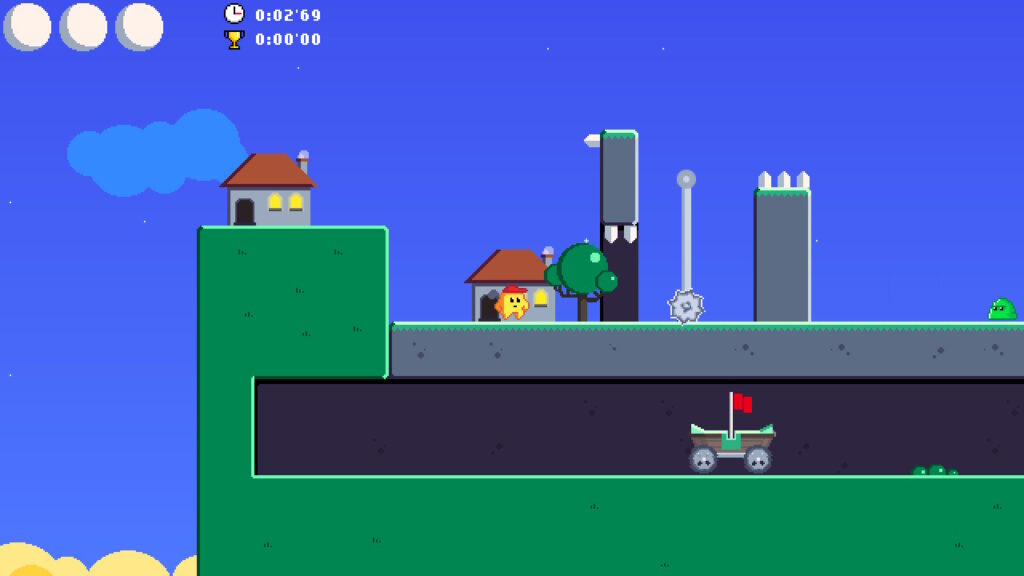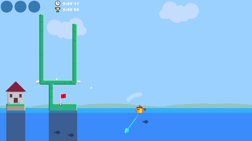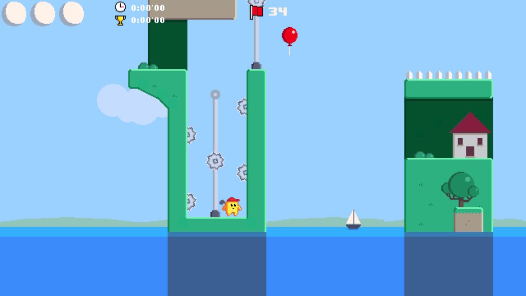 Il gioco ha una buona curva di apprendimento che difficilmente vi impedirà di completarlo, fatto salvo il munirsi di nervi freddi. I livelli di Golf Zero sono, infatti, basati per lo più su salti e colpi che richiedono una precisione millimetrica e, spesso, qualche ostacolo di troppo potrebbe risultare frustrante. Per essere chiari, stiamo parlando di un gioco che potremmo facilmente paragonare a Super Meat Boy o, per citare un titolo più recente, Celeste. Anche se, a dirla tutta, non sono poche le volte in cui Golf Zero presenta passaggi fin troppo basati sulla casualità e sulla fortuna del giocatore: in un paio di livelli vi troverete a dover contare a memoria il tempo di oscillazione di un ostacolo per riuscire ad avviare la sequenza di salti quando ancora è fuori dallo schermo. Ciò nonostante, la maggior parte del gameplay di Golf Zero presenta sfide si avvincenti e difficoltose ma agilmente superabili dopo un po’ di pratica.