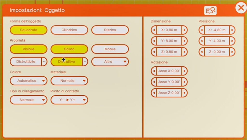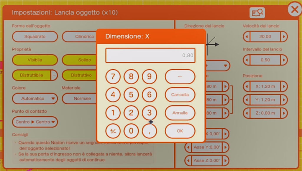 Andiamo quindi a modificare gli attributi del Nodon lancia oggetto e delle nostre pareti!
