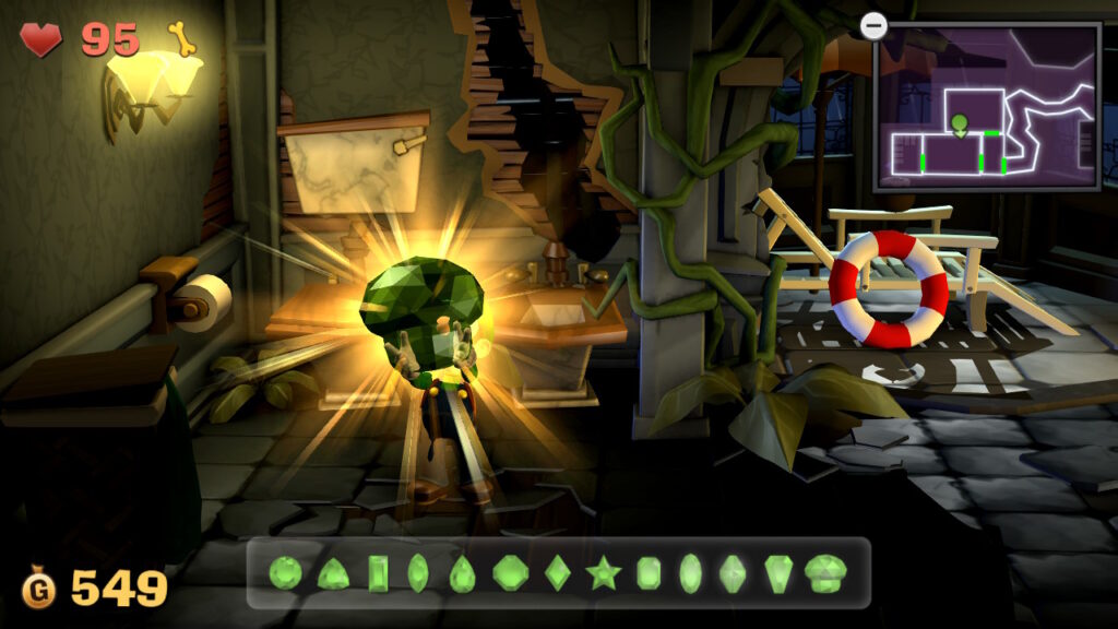 - Gemma #13 (Bagno, B-4): aspirate il rotolo di carta igienica con il Poltergust per ottenere un’altra gemma.