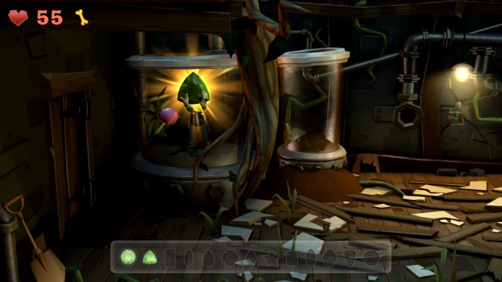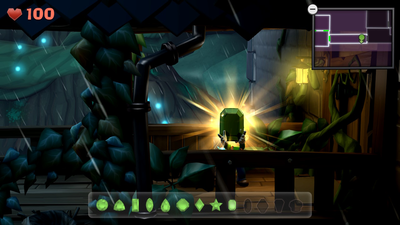 - Gemma #8 (Vecchio cimitero, B-3): questo smeraldo è appeso a una vite. Guardate in alto e aspiratelo con il Poltergust per prenderlo!