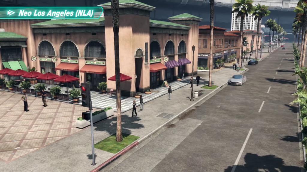 Dalla panoramica su NLA ed i suoi distretti possiamo apprezzare come la definizione generale sia aumentata rispetto al trailer di annuncio (per non parlare dell’originale), pur mantenendo la maggior parte dei modelli identici. Purtroppo molte figure più squadrate, quali gli edifici, soffrono ancora di aliasing abbastanza visibile; da segnalare invece il netto miglioramento dell’effetto blur, ora quasi scomparso.
