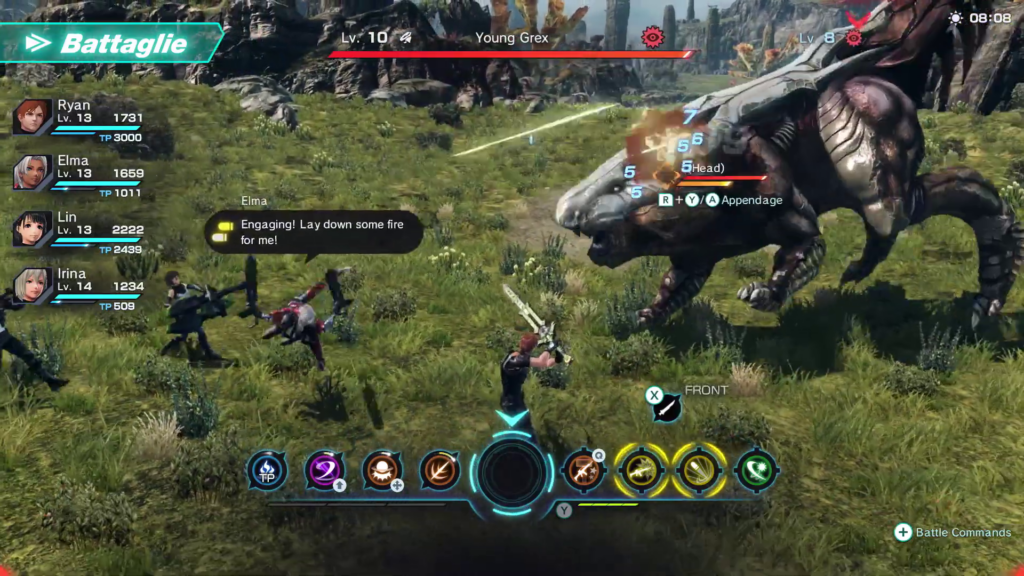 Una buona parte è ora dedicata all’illustrare le battaglie, in cui, oltre al ruggito dei Telesia, possiamo vedere la UI completa con quanto mancasse in precedenza: le scritte “Morale Level” e “Quick Cooldown” poste al di sotto delle Tecniche, ed il mirino arancione sulla testa del Grex, ad indicare la parte del corpo sotto attacco. Le prime due erano assenti nel secondo trailer in quanto compaiono soltanto per pochi secondi all’inizio del combattimento, mentre allora si trattava di una fase già avanzata.