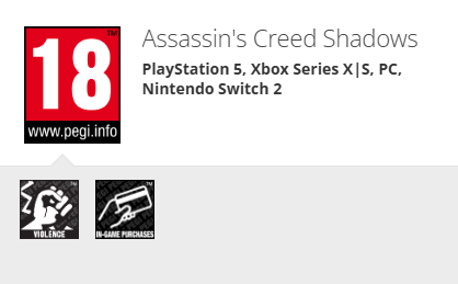 Assassin’s Creed Shadows potrebbe approdare su Nintendo Switch 2, secondo una recente classificazione dell’European Ratings Board PEGI. Lanciato solo un mese fa su PC, PS5 e Xbox, il gioco non era stato inizialmente associato a una versione per le piattaforme Nintendo. Tuttavia, un nuovo dettaglio emerso dalla classificazione PEGI suggerisce un imminente arrivo su Nintendo Switch 2.