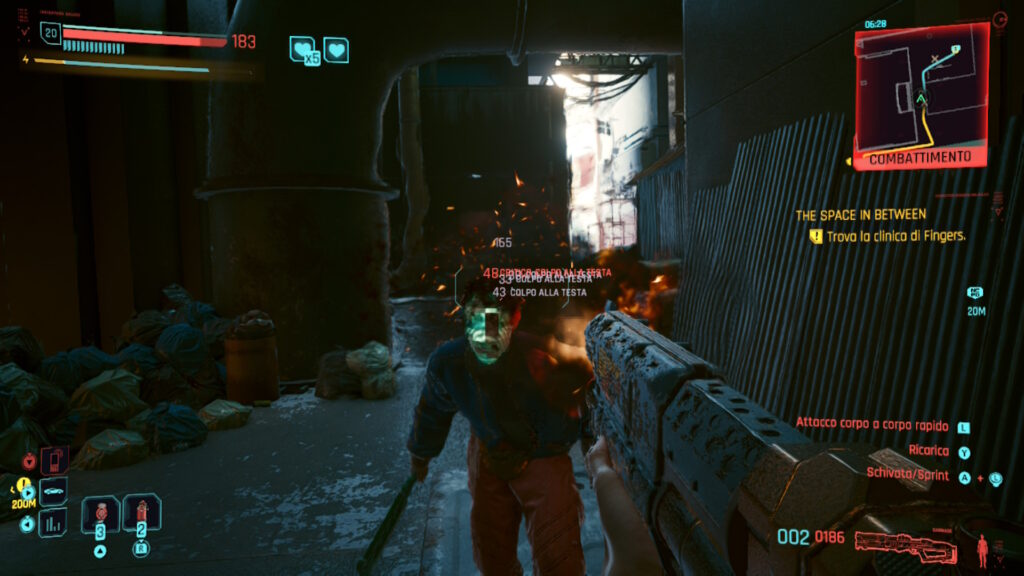 Proprio il feeling delle armi corpo a corpo però è quello che restituisce la sensazione peggiore. È vero, proseguendo nel gioco e sbloccando le abilità giuste nello skill tree potremo potenziare questo tipo di armi, arrivando a parare persino i proiettili che i nemici ci spareranno contro. Purtroppo il la sensazione generale non è troppo positiva, più che altro perché la sensazione di poca precisione è sempre dietro l’angolo e a volte combattere corpo a corpo contro determinati nemici ne risalta alcune lacune lato animazioni. Insomma, divertente si, ma è una componente che in un ipotetico Cyberpunk 2077 pt2 speriamo possa venir aggiustata.