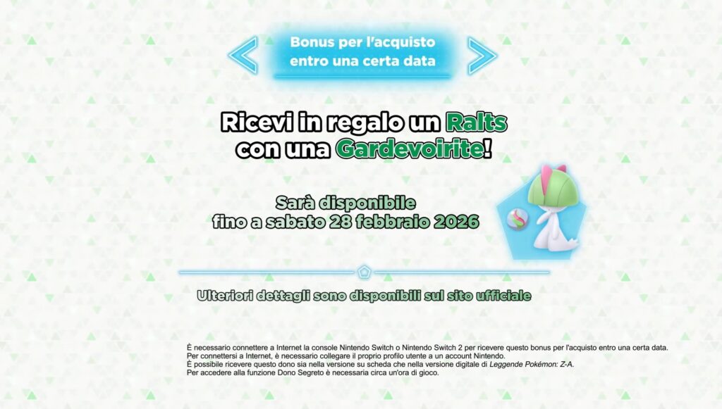 Alla fine del trailer dedicato alla storia di Leggende Pokémon Z-A, mostrato nel Pokémon Presents di oggi, sono stati annunciati dei bonus utili per l’inizio del gioco: Un ralts in grado di megaevolvere se fatto evolvere in Gardevoir e cento Poké Ball.