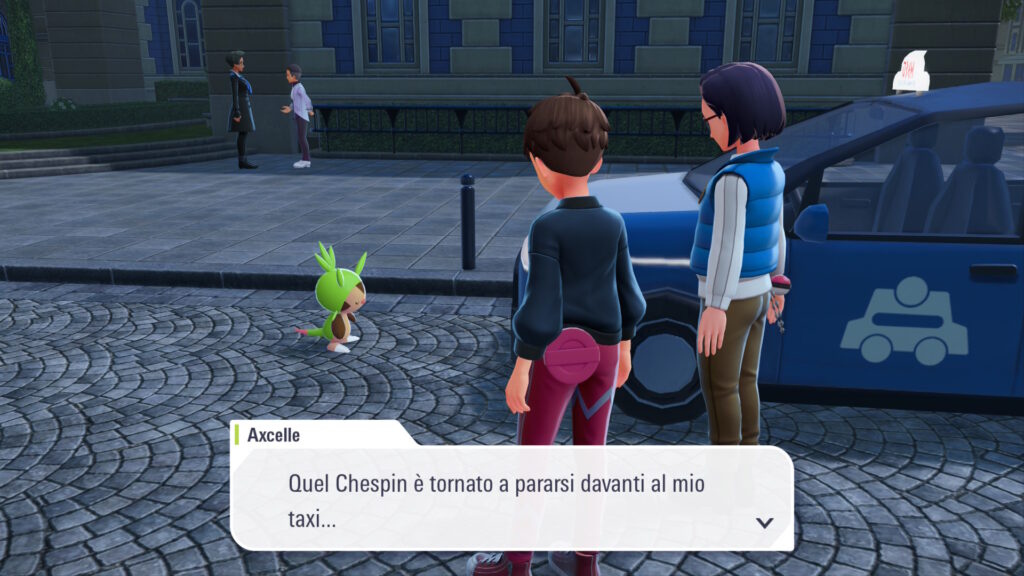 Seguendo i punti indicati dalla mappa di gioco a Piazza Centrale, ci imbatteremo in un Chespin impegnato a discutere in maniera piuttosto animata con uno dei tanti taxi presenti a Luminopoli. Quello che dovremo fare è provare a calmarlo lottandoci tre volte di fila, finché la tassista non ci proporrà di portarlo con noi alla scoperta della grande città di Kalos, perciò non bisognerà neanche provare a catturarlo: Il Pokémon Castanriccio entrerà a far parte dei nostri Pokémon dopo la sua terza sconfitta.