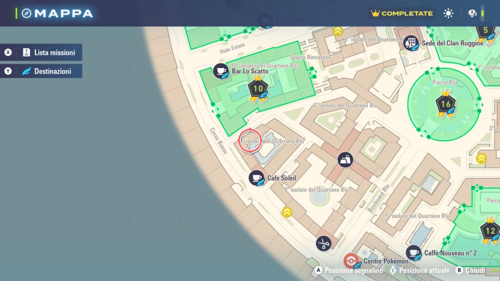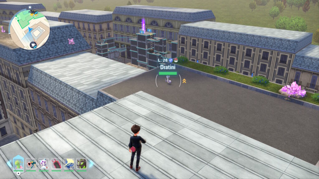 Per raggiungere il tetto del 9° isolato del Quartiere Blu segnato dal mirino, bisogna usare l’Holotrasporto ubicato nell’ottavo isolato. Arrivati sul tetto, troveremo un ponte all’angolo sud dell’edificio utile per arrivare a destinazione, che raggiungeremo dopo una breve camminata intorno all’isolato finché non vedremo il nostro Dratini.